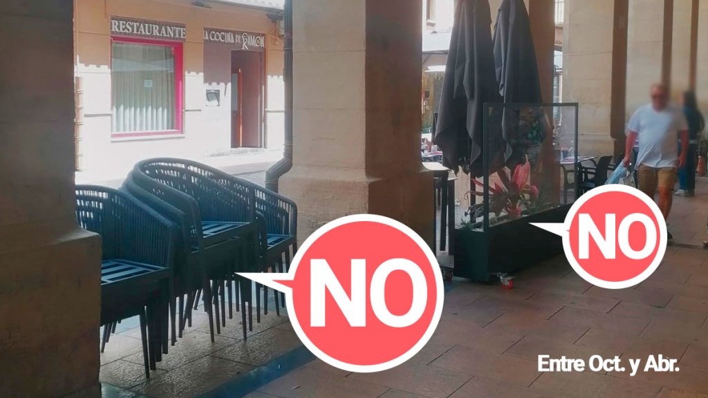 En temporada de Invierno pueden dejarlo en la calle si cuentan con permiso y cerramiento de tres caras. Durante este tiempo no está permitido el apilamiento de sillas y mesas sin más.