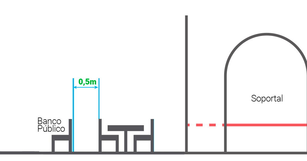 Se debe guardar un margen mínimo de 50cm de distancia con bancos urbanos (Art. 6 A. 6)