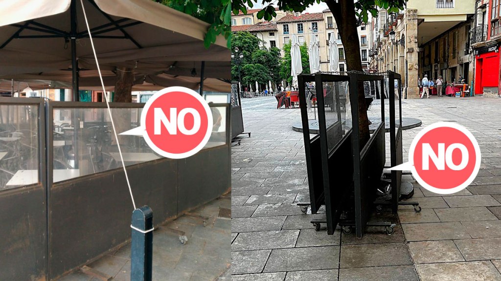 El estado de alarma terminó, pero ahí se quedaron las baldas y otras sujeciones de apoyo que, ahora, incumplen la propia ordenanza.