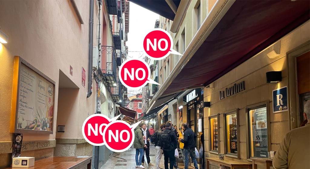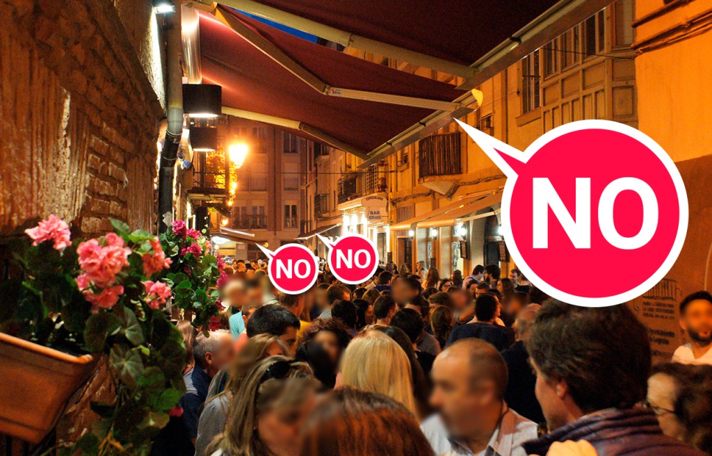 Esas infracciones son especialmente estridentes en calles estrechas del casco como la Laurel y San Juan que usan los todos para resguardar a la clientela que usa las mesas altas de las fachadas (otro elemento que hemos visto que los hostileros utilizan con impunidad)