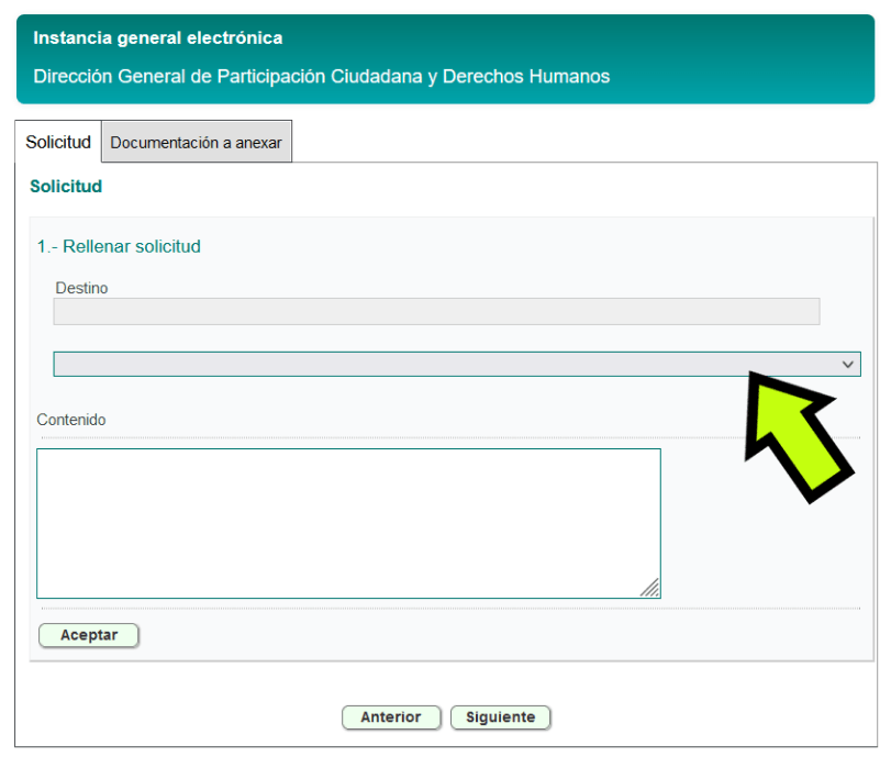 Ahora rellenamos un breve texto en el apartado CONTENIDO explicando de que va la instancia que presentamos: