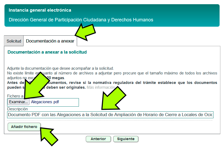 - Pulsa en la solapa Documentación a anexar